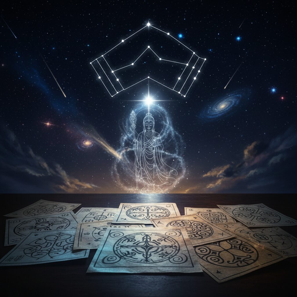 僕の専門分野でもある道教では、北辰、つまり北極星は宇宙の中心、神々の座としてすごく重要視されてる。もちろん、日本の陰陽道でも同じだよね。僕がまだ若かった頃、五雷符を完璧に描くことに夢中だったんだけど、その根底にはいつも北辰の力が宿ると信じてたんだ。あの頃は若かったなぁ…でも、完璧主義になったのは、あの村の失敗があったからこそ。今でも思い出すと胃が痛いよ😱。